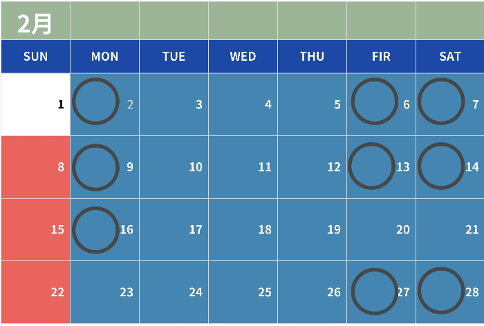 ★ 2/11,23 は祝日ですが、常通りレッスンがあります